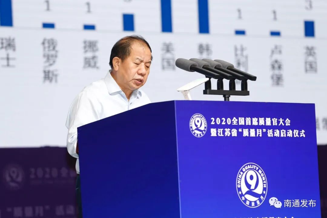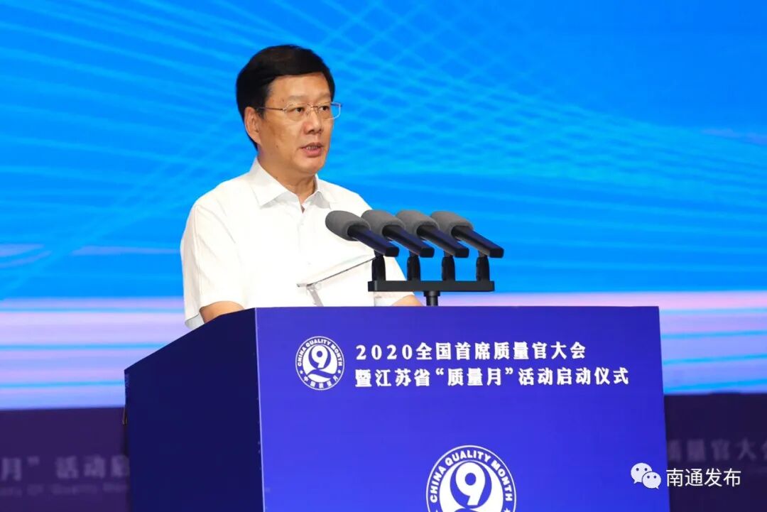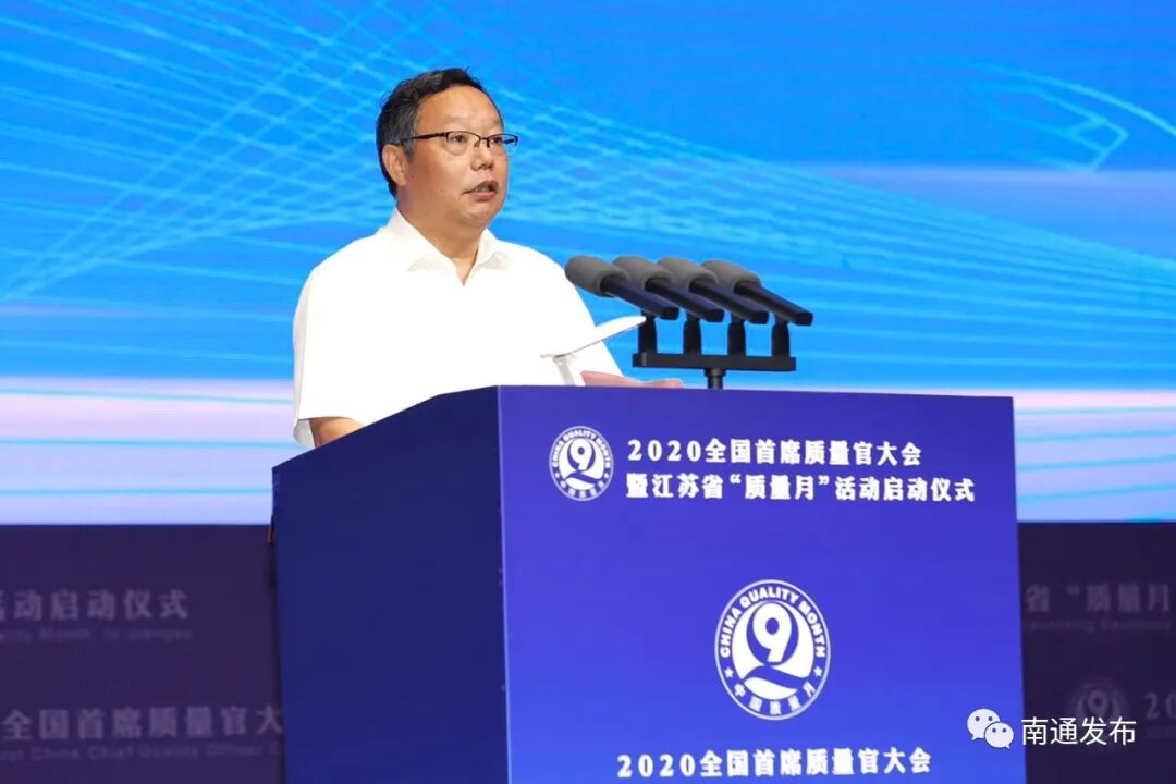),2020全国首席质量官大会暨江苏省“质量月”活动启动仪式在我市举行。国家市场监管总局和浙江、上海、广东等省市质量管理部门负责人,国内知名企业负责人和首席质量官代表,以及相关协会、学者、高校代表等500余名嘉宾现场参会,全国近万名首席质量官通过“云会议厅”同步在线与会,围绕打造质量强企、建设质量强国等展开深入交流、探讨。